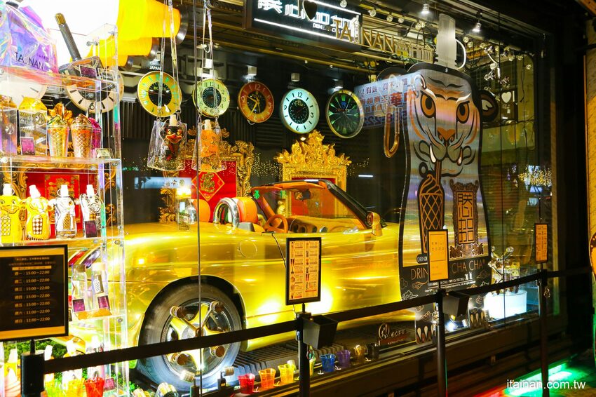 台南海安路的新打卡點「朕心加加」,獨創的台南在地味飲料杯搭配各式特色的飲品,讓你喝飲料也要喝得很時尚。店裡上下升降的金色敞篷車搭配黑色鐵件的主體,光是店外觀就讓人覺得非常潮,店門旁的大型電視牆配合不同節慶設計的互動遊戲也是一大亮點,近期推出了新品飲料杯像是愛你千鎚百戀瓶以雷神索爾的雷神之鎚為概念設計據說還未開賣就被預訂到爆炸了,還有骷顱頭造型的極光骷顱杯、爍金霜淇淋杯、璀璨啞鈴瓶,除了造型酷炫外瓶身都印有台南代表性古蹟圖案,一種台南城市杯的概念,來台南「朕心加加」你一定要收藏。