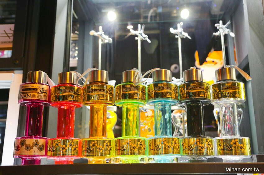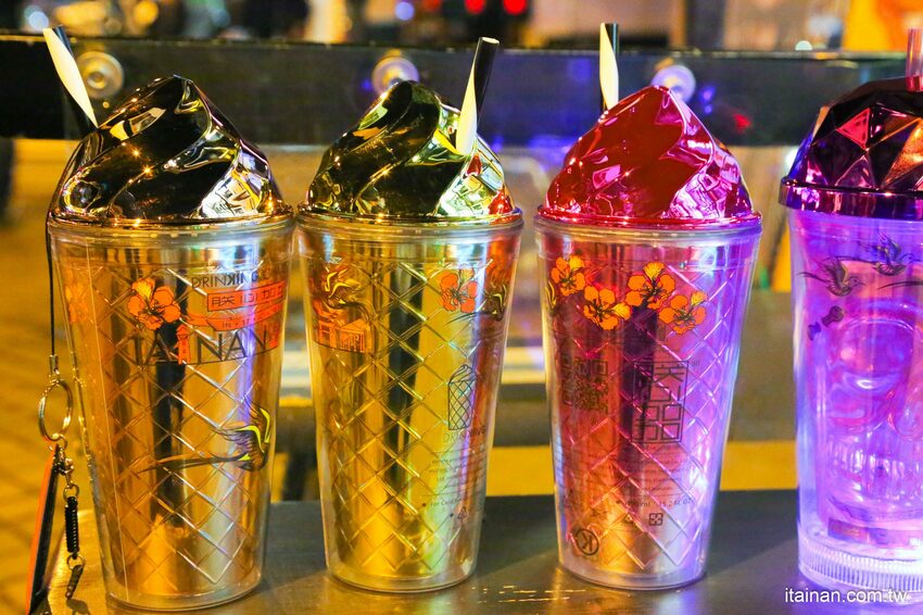 鎚)、爍金霜淇淋杯、極光骷顱系列、璀璨啞鈴瓶,每個瓶身都是有台南代表性的圖騰,十足的台南味,不管是台南人或是觀光客都要收藏一下。