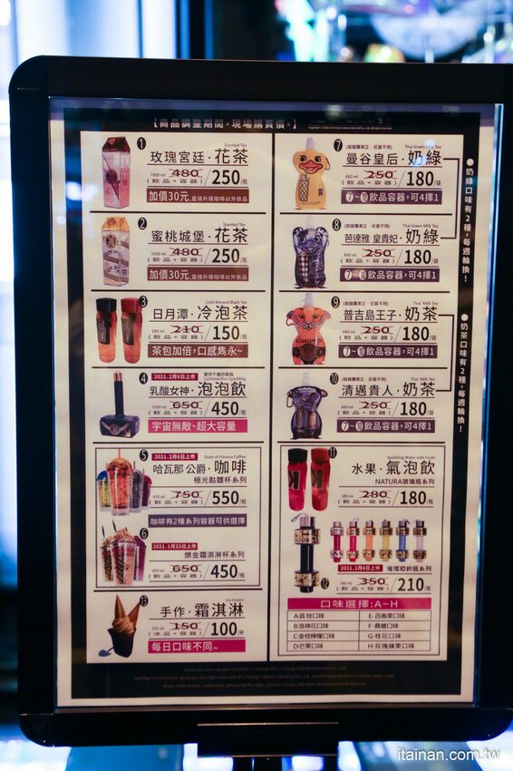 「朕心加加」推出了全新菜單除了原本的花茶系列、泰奶系列、水果氣泡飲系列、冷泡茶系列外,這次新推出的乳酸泡泡飲還有咖啡系列,而最讓大家搶著收藏的杯子也新增了愛你千鎚百戀瓶(我還是習慣叫它雷神之