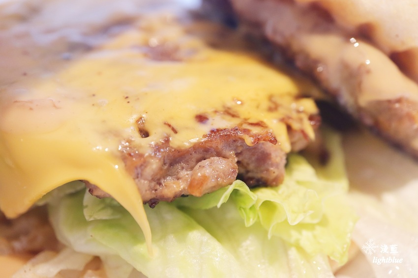 一盤是豐盛的早午餐盤,另一份就來試試看帶走也很方便的堡類,這是雙層厚牛花生起司滿福堡,實體比我預期要來得小號一些