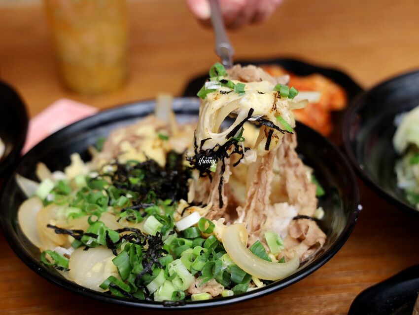 肥瘦相間的牛肉薄片,入味且加量的肉片,吃來真是過癮!加入了滿滿洋蔥,洋蔥已不嗆辣,反是甜美的蔬菜味;牽絲濃郁的起司增添了奶香味,而醬汁淋在白飯上,盡是鹹中帶甜的銷魂滋味,這丼飯令人太飽足了!