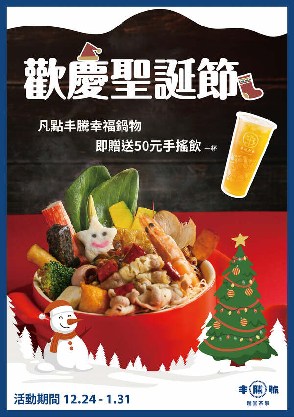 這個冬天因為丰騰號 麵堂茶事而很溫暖!即日起至明年一月底止,凡點丰騰幸福鍋物就能免費獲得50元手搖飲料一杯喔!