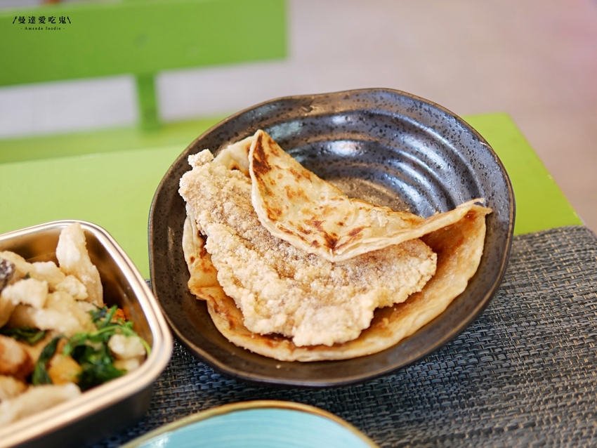 大力推薦一定要趁熱享用的『雞排中隊』蔥油餅夾雞排,越嚼越香的蔥油餅加上表層炸得金黃酥脆、裡頭軟嫩好咬、一吃就知道有先下功夫醃漬的入味無骨雞排,最後還會有淡淡油膏甜香、超過癮!