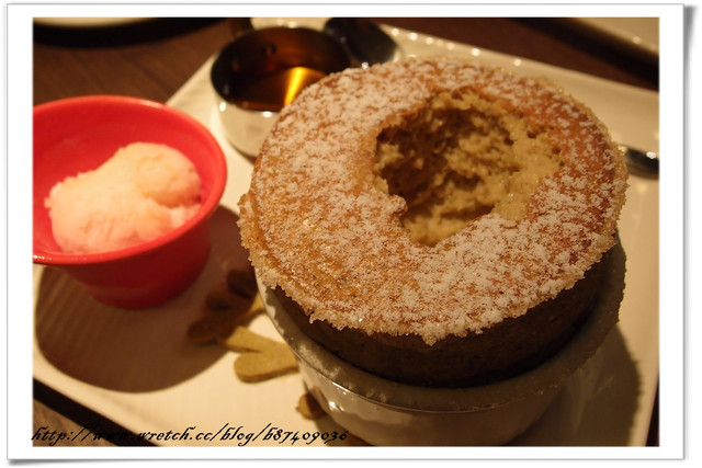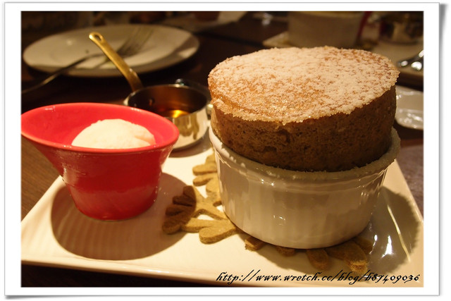 外型跟之前Just in Bistro Wine&Bar的舒芙蕾不太一樣 凹凸不平的頂層乍看有點像海綿蛋糕
