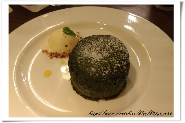 抹茶熔岩巧克力(190元) 點這道有一半是因為想看看切開蛋糕後流出綠色液狀巧克力的fu 光想就覺得新奇