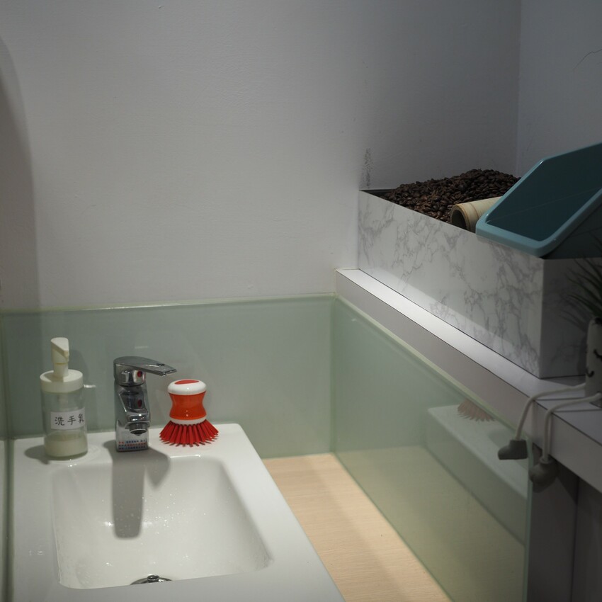 一旁半自助的服務台除了有飲料餐具可以自取,還非常貼心地備有洗手台~