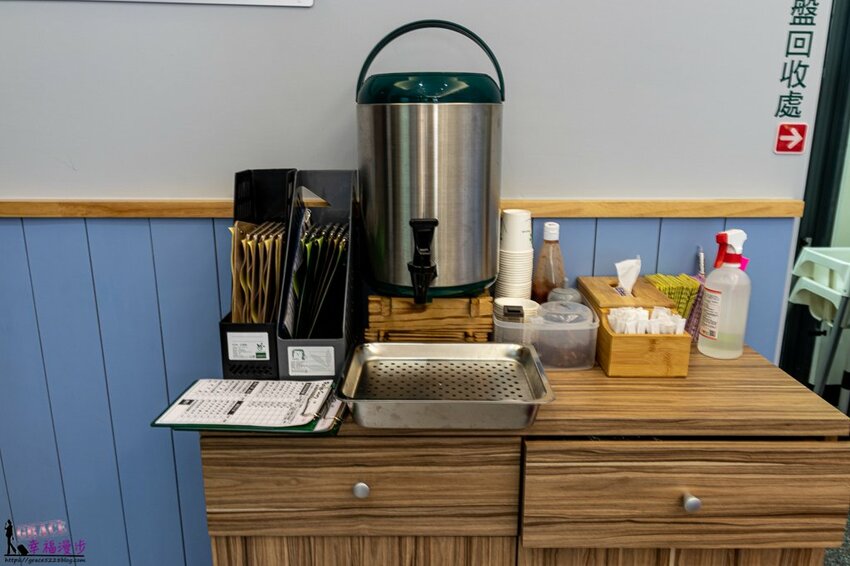 這裡用餐是不收服務費,店家也很貼心準備了檸檬水請自行取用,另外如果想添加辛香料請至後方的櫥櫃上拿取喔!