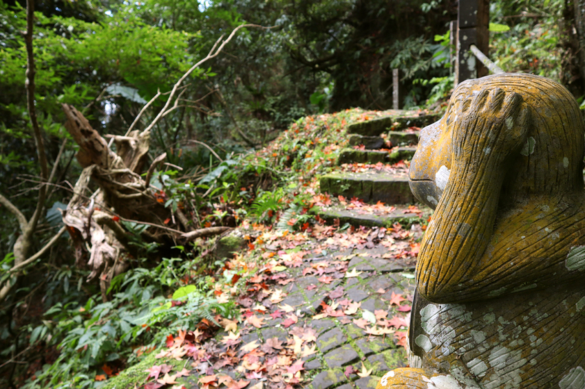 金龜岩的正後方,看到一隻摀住耳朵小猴,就是猴洞步道的入口了,建議在這邊可以先好好休息,因為接下來……