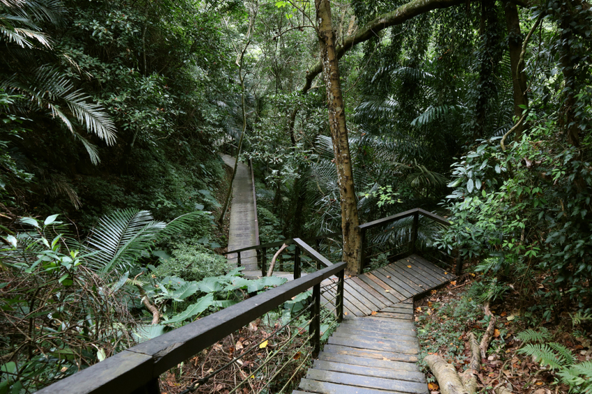 走過水濂橋,會經過一段向往上高繞步道在到下一個景觀-糯米橋,這段步道坡度不陡,加上兩側被鬱綠植物、竹林環繞,走起來很舒服輕鬆。