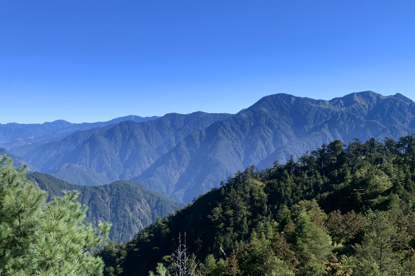 雖然錯過看雲海的最佳時機(早晨/傍晚),但眼前的景色就像平靜的海面線,一座座群山,如小島般佇立在大海之上,雖然沒有熱血的翻湧壯闊,但有著寧靜、安定感,相信在日出、日落的時刻能看到更感動的景色。