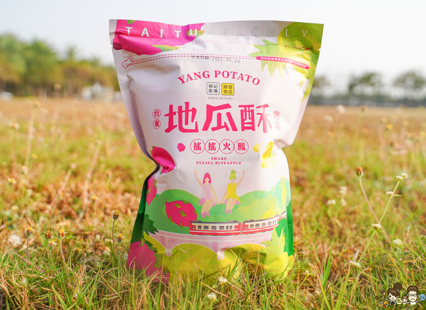 越過了鹿野二層坪景點,包裝帶有粉嫩色系的 搖搖火鳳 台東地瓜酥