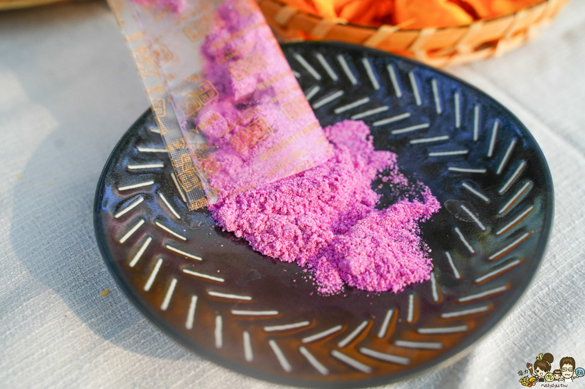 一打開包裝看到夢幻紫色的搖搖粉,獨門特製的混合口味,象徵台東熱情國度