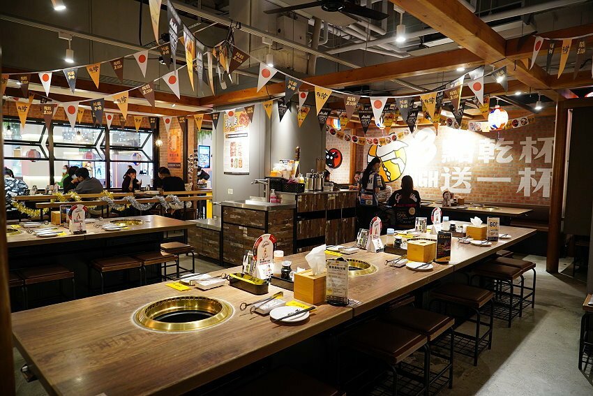 ▼「乾杯燒肉居酒屋」桃園大江店就位於大江購物中心的GBF,帶點美式鄉村風加上日式的燈籠造景,別有一番風味!