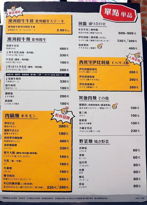 ▼吃不夠過癮的朋友還可以單點各種肉品享用,也有拼盤可做搭配!