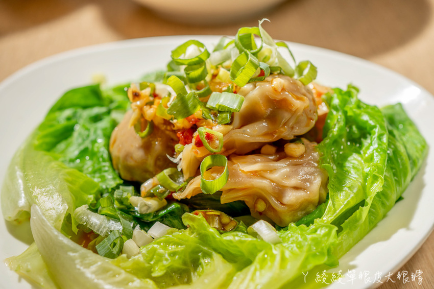 招牌人氣必點的紅油口水雞,CP值相當高!整盤雞肉都是選用去骨雞腿肉,口感不到軟嫩但很緊實,香辣帶麻的滋味真的不錯,好想來一碗白飯喔!上頭還撒了花生碎白芝麻、及蔥花點綴,底下鋪滿辛嗆的洋蔥絲。(怕辣可以調整辣度)