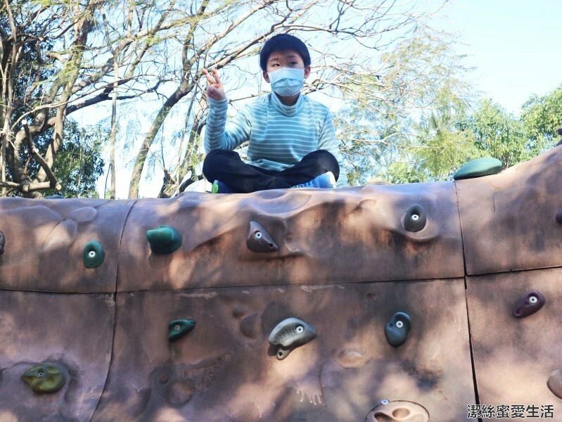 我們家這隻弱雞不會滑板,只能帶來遊戲區稍微運動一下XD,一大片的攀岩區可以讓孩子稍微耗點體力。