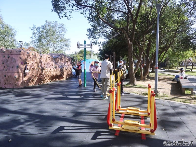 攀岩區旁邊也設有一些健身器材,大人也能一起運動不無聊。