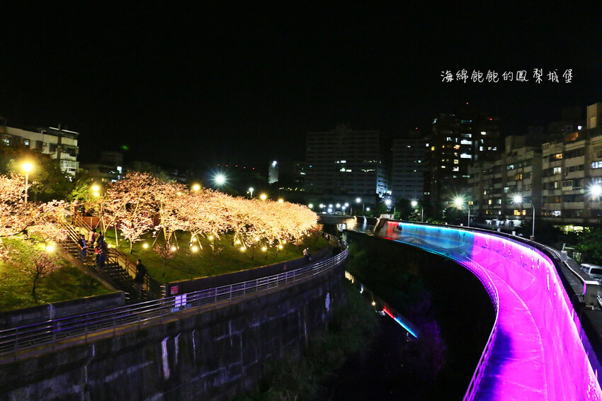 與對岸的櫻花林相稱,燈光變換彷彿一場SHOW