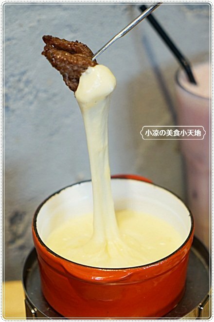 摩佐拉起司鍋–義大利香草起司鍋,起司鍋前附上白酒、起司粉、胡椒粒可依照個人喜好加入調整起司鍋風味,內容有生菜沙拉、骰子牛、燻雞、法國麵包、附飲料(冰美式、熱美式、紅茶、奶茶可免費再續)