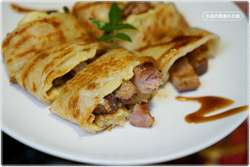 酥香的餅皮帶點厚度與燻豬五花交融於我挑剔的嘴巴內,煙燻味道很明顯地充斥著味蕾間,豬肉紮實具咀嚼口感,整體來說很獨特又不賴!