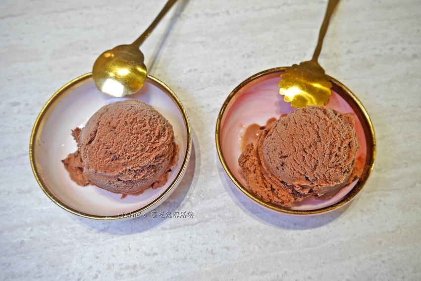 飯後甜點是 巧克力冰淇淋,冰淇淋偏向苦甜,還吃的到一點巧克力碎片的口感,很好吃