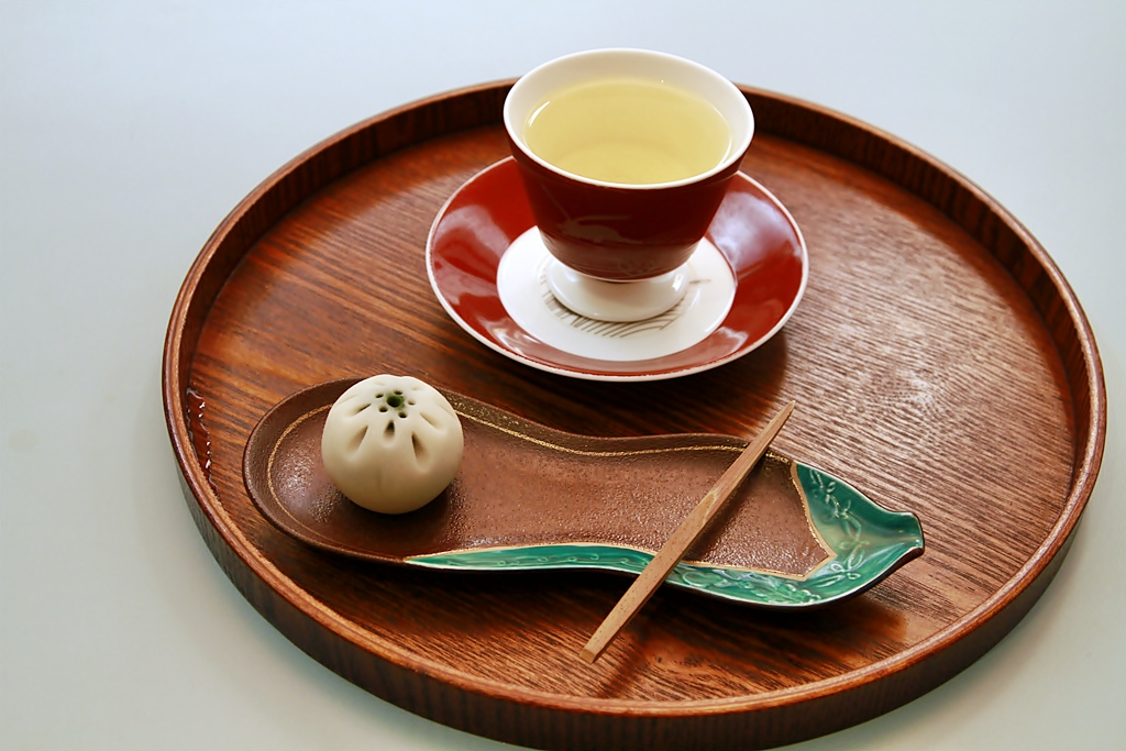 服務人員會親切的幫顧客放上精緻的日式餐具 還有日式的茶