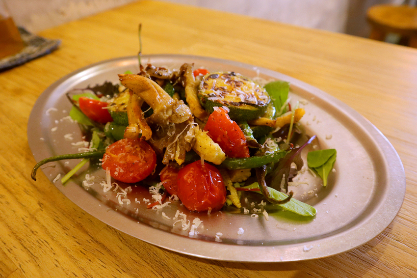 蔬菜經過高溫快速窯烤,蔬菜外表焦香味十足,但不管是蕃茄、櫛瓜、糯米椒還是保有水嫩口感,且味道比起生食更鮮甜,也認真覺得這道也是啤酒好朋友。