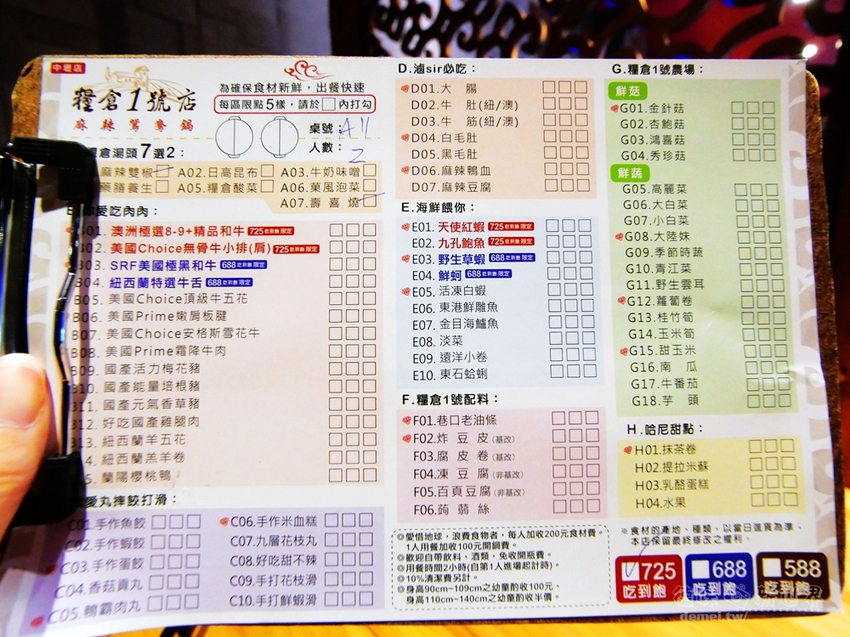 糧倉1號頂級麻辣鴛鴦鍋中壢店 菜單 MENU