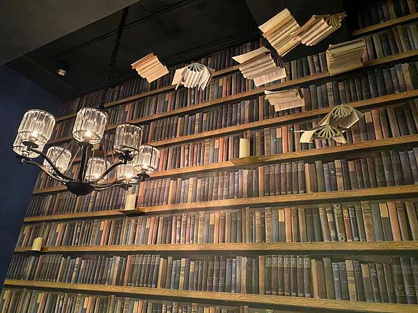 映入眼簾的英式裝潢風格搭配魔幻飛舞在空中的書本,跟書牆裝飾低調奢華的環境,座椅也是復古風的沙發有質感非常的舒適又好拍,完全是網美IG拍照打卡的好地方~
