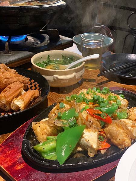 熱炒的部份我們點了炒水蓮、鐵板豆腐、塔香蛤蜊,松阪豬