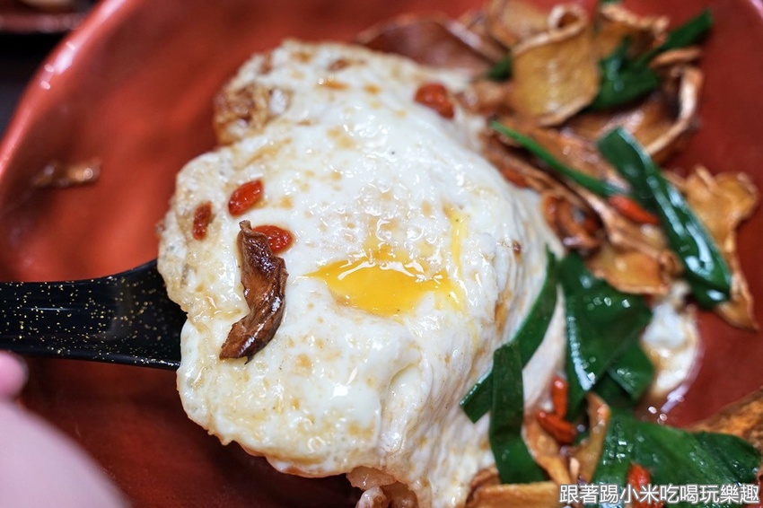 像這個麻香煎蛋(80元)小米很喜歡,上桌可以聞到麻油的香氣搭配半熟蛋,麻油醬汁淋在白飯上,真的會不自覺多扒好幾碗飯