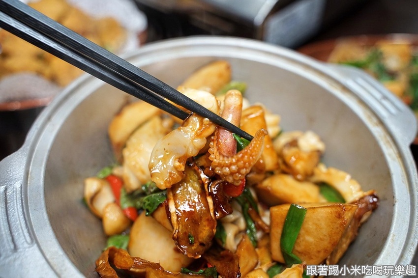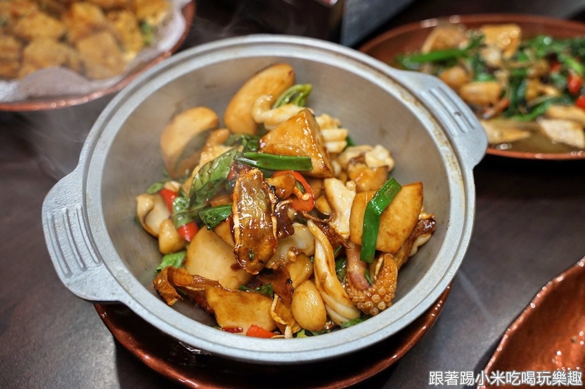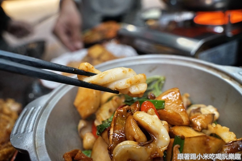 三杯軟絲(260元)也很推薦,上桌熱吱吱的聲音挺過癮的,有軟絲搭配蒜頭、杏鮑菇,也是好下飯的好角色