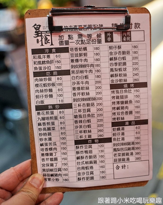 以上是小米的心得分享,在大遠百附近沒什麼快炒店,皇食快炒讓附近朋友多一個選擇,是多人用餐、小酌的好地方。