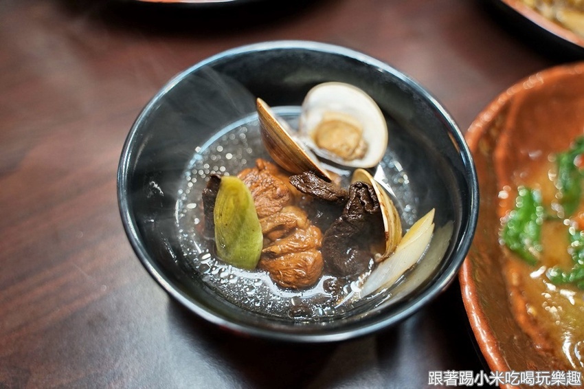 老菜圃雞湯(380元)有老菜圃、雞腿肉跟蛤蜊,喝到老菜圃煮出來鹹香甘甜的湯頭,還帶著蛤蜊及雞肉的甜味,喜歡喝湯或是想要喝湯解酒的朋友,很推薦喔