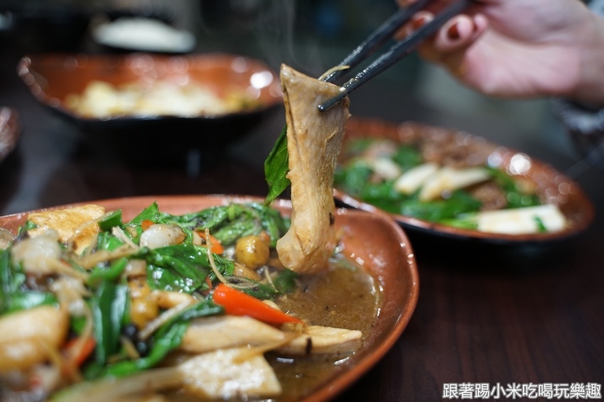 天氣冷先來喝個熱湯。老菜圃雞湯(380元)很推薦,上桌的時候先讓湯煮滾個10分鐘,讓湯頭更入味