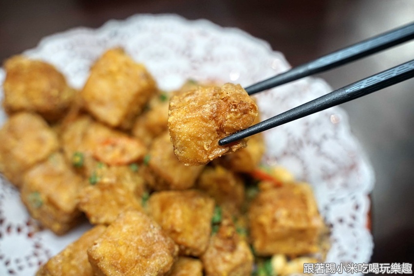金沙豆腐(180元)有軟酥的外皮、裡面還有軟嫩的豆腐,加上金沙的鹹香入味,也是下酒的好菜色