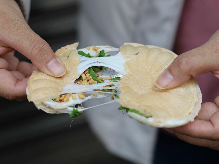 照理說麥芽糖哪有不甜的道理,但這個白色麥芽糖跟最中餅、花生粒及香菜,可說是完美最佳的比例,不僅有麥芽糖的甜、花生的脆,香菜的香,整體搭起來,甜而不膩,真的很好吃!有點像在吃清爽版的花生冰淇淋捲。