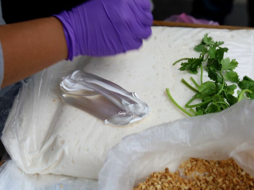 攤頭上放的就是麥芽酥餅的主要食材,白色麥芽糖及新鮮的香菜,若不吃香菜則事先告知即可。