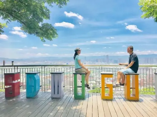 除了旁邊「SDWUGU」有座位外,旁邊也是有設置休息區域,而且不論坐在哪兒都能將這一大片的美景一覽無遺,但也要注意的是來到公園蚊蟲較多,一定要攜帶好防蚊噴霧或是藥膏,我們就是什麼都沒準備結果在公園內邊看美麗景色邊拍照邊抓癢,如果在待更久的話雙腳可能都會被蚊子咬。
