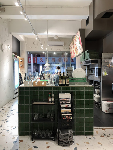 外帶PIZZA盒跟前台磁磚拼貼的綠也特別注目,