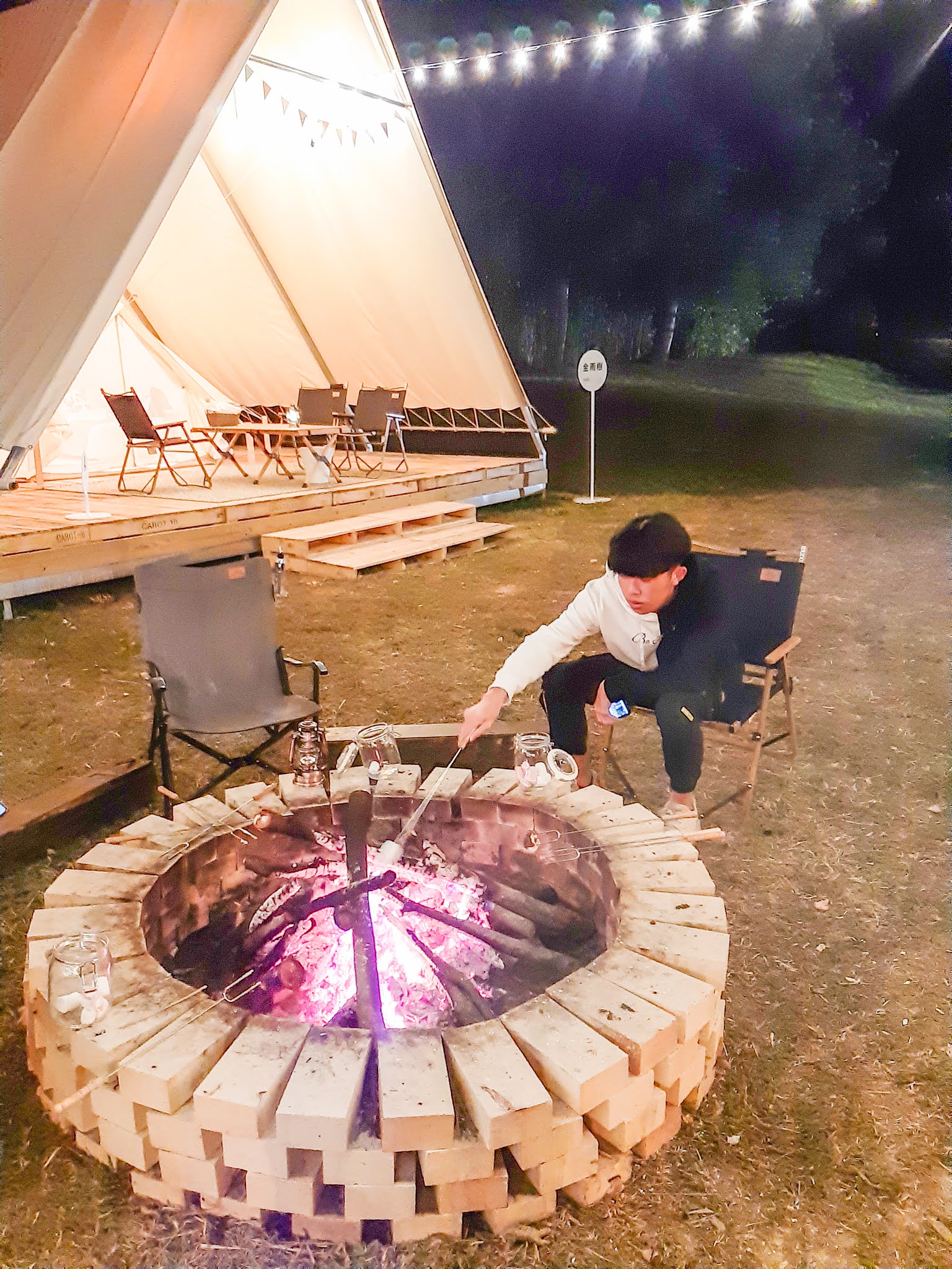 蟬說:山中靜靜︰長夜漫漫,怕冷怕無聊,可到烤爐旁來烤棉花糖,跟其他帳蓬Glamping朋友一起聊天,是不是很愜意呢🍡