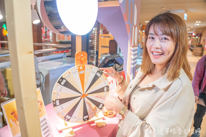 消費滿$1000元即可參加活動轉轉樂,最大獎是泡湯券喔!