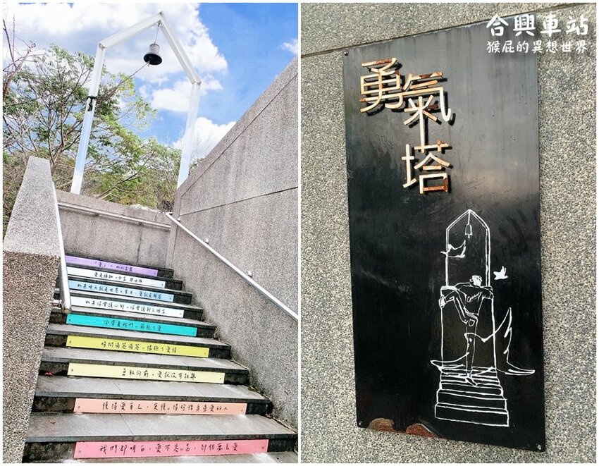 裡面有一個勇氣塔,階梯上都有一些很不錯的句子