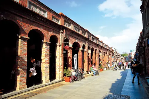 「大溪福仁宮」占地300餘坪,為一座三殿式建築,屋頂皆為假四垂設計,中廳或廂房都設有二支龍柱。主殿挑高與二層樓後殿高度相當,象徵主祀及陪祀的神祇無大小之分。被和平老街一分為二的廟埕,早期常見孩童齊聚打陀螺、里民們閒話家常的景象,現除了當作停車場,亦是社區活動場地,還有如今少見的戲台,過往每逢農曆二月十一日的開漳聖王誕辰慶典,都會舉辦「賽神豬」活動,由李、江、林、簡、張廖、黃、呂、王游、陳與雜姓十大姓氏輪流獻神豬,十年一輪,每個家族都視此活動為大事,神豬由專業師父彩繪花紋,再送至「福仁宮」廣場獻祭,而來自四面八方的信徒,則隨著北管鑼鼓吹奏傳統樂曲,民俗戲曲等傳統表演參拜祭祀,成為當地一年一度的宗教盛典,然而,隨著時代演進忌殺生的觀念改變,這項曾經有百年歷史的「賽神豬」活動逐年式微,宰豬改由麵龜、麵線、橘子等食材製成「創意神豬」取代,但民俗文化傳承的意味與熱鬧氛圍仍舊保有。