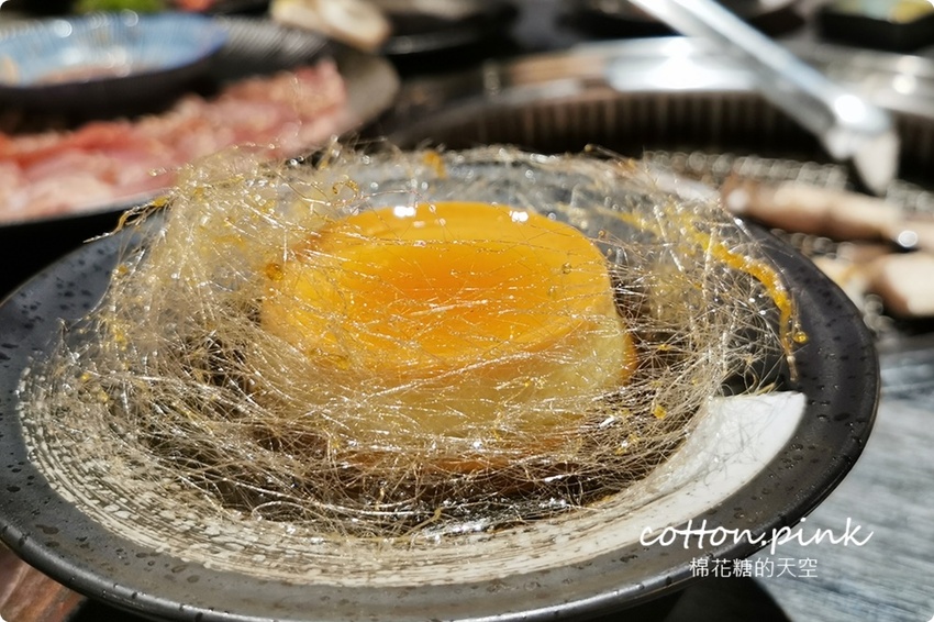 特別用高腳杯裝的是淋上燒肉醬的骰子牛肉,放到最後在才介紹就是因為他太厲害啦!這也是從和牛原肉切下來的邊角肉,所以油花一看就知道跟一般的骰子牛不一樣,果然烤到表面微焦之後放進嘴裡一咬就爆肉汁啊!超級好吃的啦!