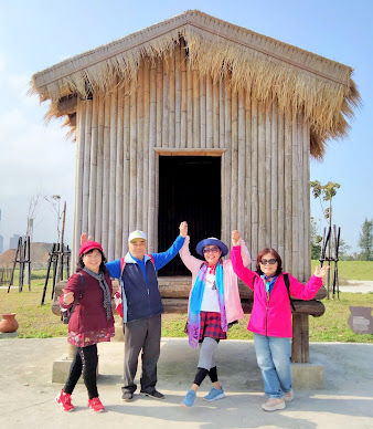 年前參加了[週一趴趴走]的群組,第一次活動目標就是挖仔尾八里左岸;遊覽車先將團圓送到[新北考古公園],大夥兒就一路健行走下去~~[新北考古公園]面積約5.2公頃,以十三行文化為主題,融入考古、教育、生態、藝術與人文等元素,為北臺灣最大之考古公園。(圖片擷取自官網)踏進園區後,就被這股田園風貌給吸引著,一個勁的就跑過去猛拍,茅草屋、茅草棚....這都是以前住眷村時的光景,好令人懷念呀!!恍若走進時光隧道中的光景~~同行的團員也興致盎然,逐個的輪拍來懷舊~~園區設有學習體驗教室、文物典藏展示室、考古互動探坑、仿十三行人住屋、草棚、穀倉、渠道等,營造十三行人當時居住之環境。(資料擷取自官網)