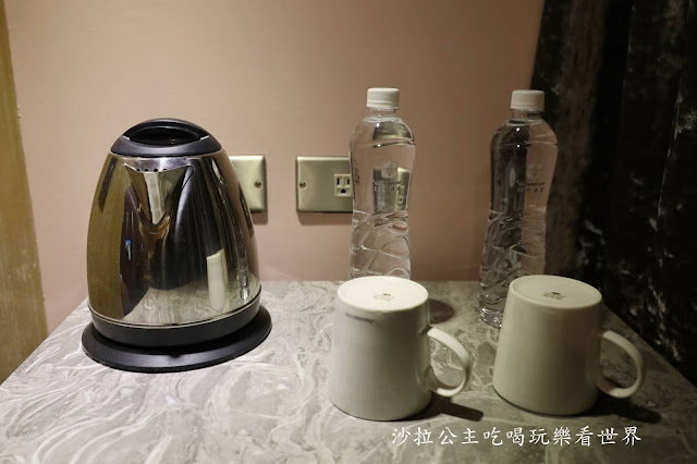 快煮壺、2瓶免費瓶裝水、免費咖啡包、茶包