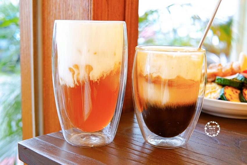 初鹿綠茶拿鐵,每日限量,漸層的綠茶拿鐵,微糖微冰,喝起來無敵清爽;阿飛經典冰特調,半拿鐵,不同於一般的拿鐵,使用初鹿鮮奶與特調鮮奶油,喝起來較滑順,漸層感也是很美,微糖微冰,香醇滋味的咖啡真的讓人難以忘懷。