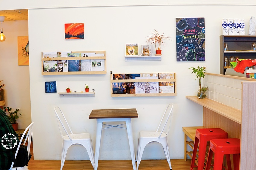 你所看到的任何畫作與設計,都是出自於老闆娘,真的太厲害了啦,不講還以為是哪位大師的作品呢,小荻自己真的超喜歡這面牆,黃色象徵陽光搭上綠意盎然的葉子,又加上相當童心的動物畫作,真的光是看到心情就超美麗,整個很有活力了呢。