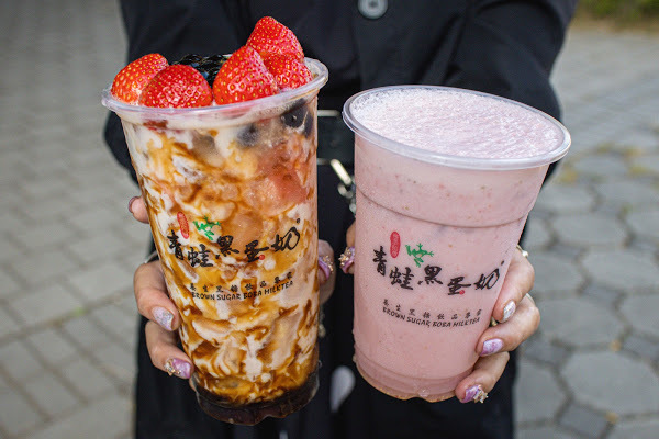 經典黑蛋奶尬新鮮草莓汁與大湖草莓好驚艷,用料大方又實在,乳源採用有小牛貼紙的鮮奶,讓朋友們能夠喝得開心又安心。鍋中粒粒晶瑩剔透的黑糖波霸,彈牙軟Q越嚼越療癒,尾段是黑糖香甜滋味衝上心頭,不得不說青蛙的黑糖波霸真是超人一絕,比起別人個頭大了一號咬起來才過癮。